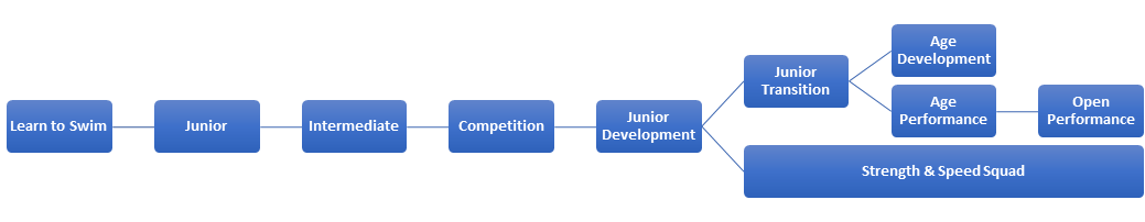To advance to the next squad level a swimmer should be showing great enthusiasm and regularly be near the front of the line. If they are strong in all areas the coaching staff will be considering them to go up. If swimmers are eager to go up they should ask their coach how they are performing. We have test sets that we will also use to determine when swimmers are ready to progress.